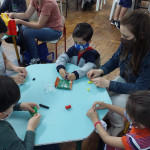 Culto com histórias e músicas, oficinas diversas e brincadeiras no ginásio.
